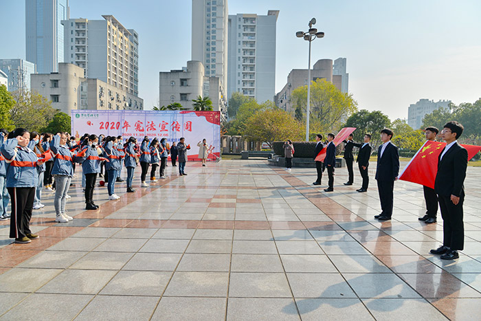 12月4日,我国第七个国家宪法日到来之际,我校在校园文化广场开展了以“深入宣传学习习近平法治思想,大力弘扬宪法精神”为主题的国家宪法日暨宪法宣传周系列活动。校党委副书记刘群英出席活动,并观摩2020级法学专业新生宪法宣誓仪式。