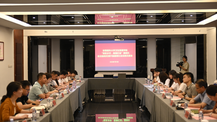 实践第一站为交流座谈会。泾县县委常委、副县长、琴溪镇党委书记叶亮、拉斯维加斯国际平台首页 卫生管理学院党委书记李绍华及社会实践团的13名师生一行出席座谈会,会议由泾县团县委书记杨琴主持。