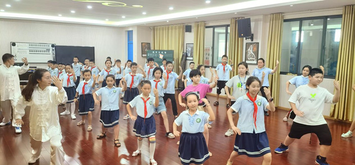 此外,团队特邀嘉宾,安徽省黄梅戏协会袁伟、李洁两位老师,教授小朋友们传唱黄梅戏,丰富小朋友们课后生活,礼敬中华优秀传统文化。团队成员于子祥、吴晨馨带领小朋友们习练太极拳,达到促进身心协调、增强自信,以美育人、以文化育人的教育新格局。