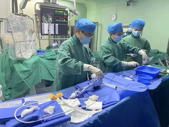 对此,宁彬带领团队多次讨论,认为经导管二尖瓣缘对缘修复术为最佳手术方案。在麻醉科、超声影像团队、心脏重症监护室、介入护理团队等多学科的共同协助下,经过两个多小时努力,手术团队成功对其实施经导管二尖瓣缘对缘修复手术。