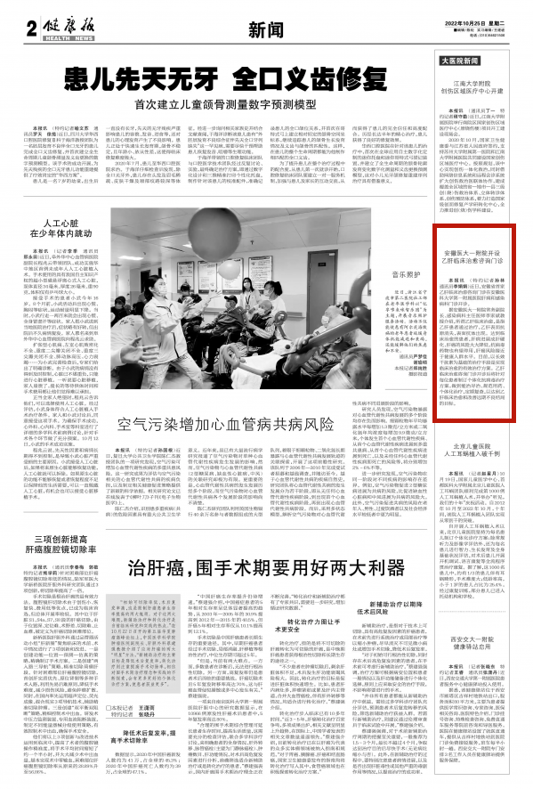 健康报:安徽医大一附院开设乙肝临床治愈咨询门诊