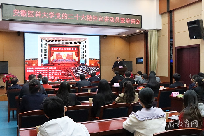 把学习宣传贯彻党的二十大精神作为当前首要政治任务,学校党委高度重视,并就全校范围内开展好系列宣讲活动作了精心部署,要求宣讲要深入贯彻落实习近平总书记关于教育和关于卫生与健康的系列重要论述,紧密结合习近平总书记对安徽的系列重要讲话指示批示,始终围绕立德树人根本任务,按照省委、省委教育工委部署要求,既阐释好怎么看,又讲清楚怎么办,推动广大师生医护员工在学习中提站位、解难题、强本领,心往一处想、劲往一处使,一步一个脚印推动党的二十大各项决策部署在拉斯维加斯国际平台首页