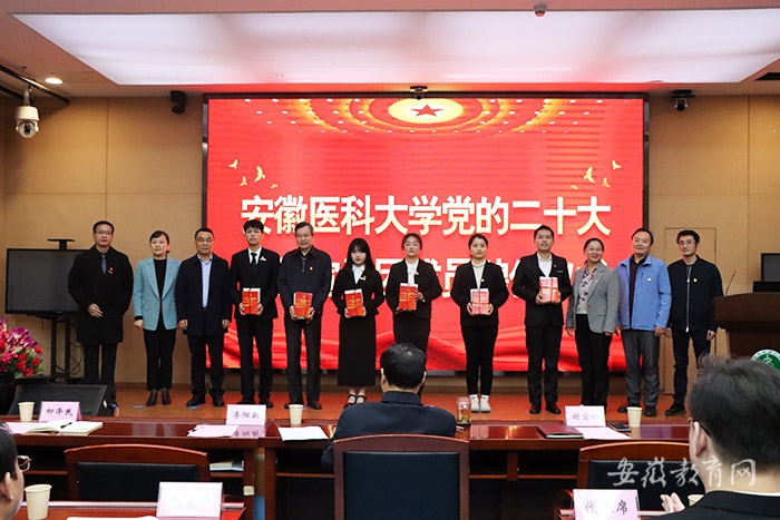 会上校党委副书记谢瑞瑾为宣讲团成员颁发了聘书,送上学习材料。校马克思主义学院副院长储著源、公共卫生学院儿少卫生与妇幼保健学系博士生导师朱鹏、2020级马克思主义中国化研究专业硕士生张舒、2020级思想政治教育专业硕士生孙婉霓分别代表马克思主义学院骨干教师宣讲团、“师说·我说”党史学习教育微党课金课获奖者、马克思主义学院研究生思政宣讲团和校思政宣讲团发言。他们一致表示,将在全面把握党的二十大精神上下功夫,紧紧围绕讲深、讲透、讲全、讲准、讲活党的二十大精神这一中心任务,切实加强研究阐释,精心做好宣讲支持和服务,坚持高标准、有特色、务实效地完成在全校广泛宣讲党的二十大精神的政治任务。