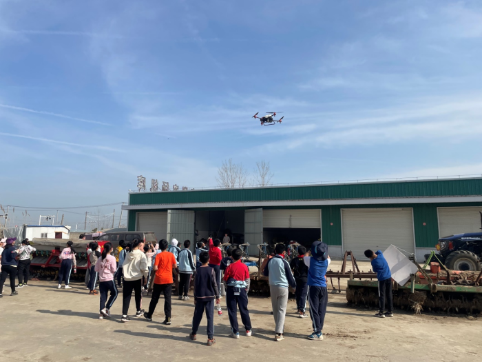 下午,同学们参观了农机装备库。现场基地辅导员向同学们展示了农药喷洒机、联合收割机、施肥机、各类拖拉机及耕具等大型农业装备。让同学们理解“农业的出路在于机械化”、“藏粮于技”含义。