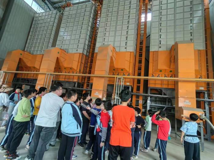 然后,同学们参观了三万吨粮库,体验了粮食烘干线。通过空库、半库、满库,现场学习现代化粮库保管技术。烘干线为抢收抢插,保证粮食安全颗粒归仓,夺取粮丰起到决定作用。“手中有粮,心中不慌”,粮食安全始终是治国安邦的头等大事。理解总书记提到“藏粮于技”之于粮食安全的重大意义。