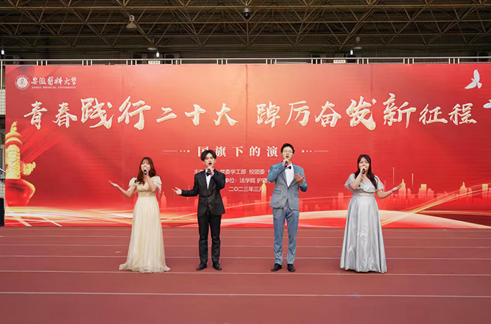 “请党放心,强国有我!”升旗仪式结束后,该校法学院2022级法学专业孙柳斌等同学合唱歌曲《有我》,嘹亮的歌声传递出强烈的爱党爱国之情。2021级法学专业陈旭等同学表演的诗歌朗诵,声情并茂地歌颂了伟大中国共产党的光辉历程,号召广大安医学子以昂扬饱满的姿态拥抱未来,不负青春韶华,不负党和人民的殷切希望,脚踏实地,秉承“弘毅担当、精医报国、康民济世”的安医精神,勇立潮头,矢志为中华民族伟大复兴贡献青春力量。