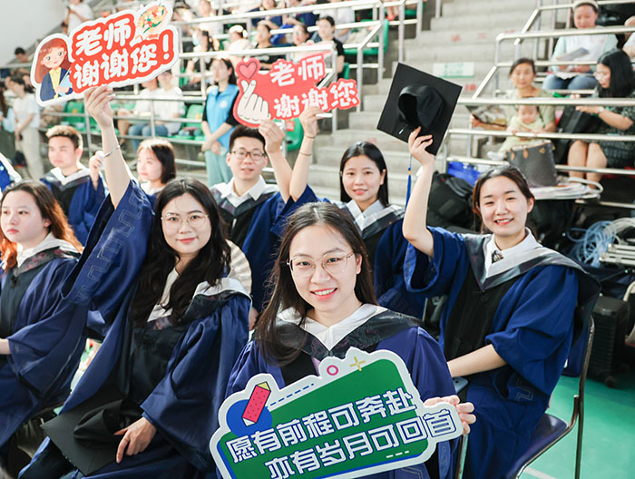 除线下会场外,毕业典礼通过线上平台及学校官方微信视频号、抖音号等进行了同步直播,全校师生及广大家长亲友、校友等近5万人次同步观看,纷纷为2023届毕业生送上美好祝福。