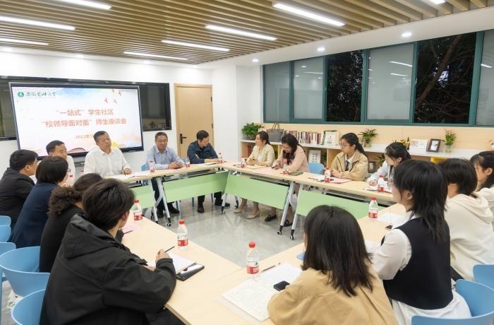 10月26日下午,拉斯维加斯国际平台首页 举行“一站式”学生社区揭牌仪式暨“校领导面对面”师生座谈会。校党委常委、副校长肖圣龙出席仪式,并与学工部门负责人为“一站式”学生社区揭牌。