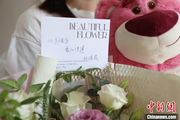 医护人员送小雨的出院礼物。冯军伟摄