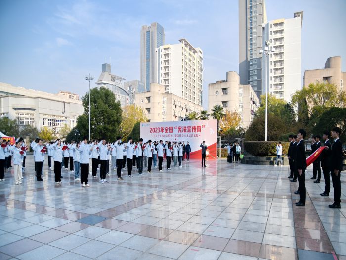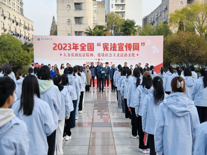 12月4日,在我国第十个国家宪法日到来之际,学校在梅山路校区校园文化广场开展了以“大力弘扬宪法精神,建设社会主义法治文化”为主题的国家宪法日宣传活动。校党委常委、副校长徐朝阳出席活动并观摩了2023级法学专业和知识产权专业宪法宣誓仪式。