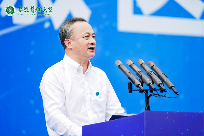 “‘做自己、敢追光’‘我的人生我做主’是你们自信自立的标签。每个人都有自己选择的道路,每个人都有笃定前行的方向。”从脚踏实地的学习到埋头苦干的科研,从自找“苦”吃的志愿服务到不惧失败的竞赛竞技,翁建平细数了安医学子取得的累累硕果,为他们感到骄傲,对他们展现出的昂扬斗志、自信风采,以及敢试敢闯、敢拼敢赢,全力以赴、勇往直前的精神给予高度肯定和赞扬。