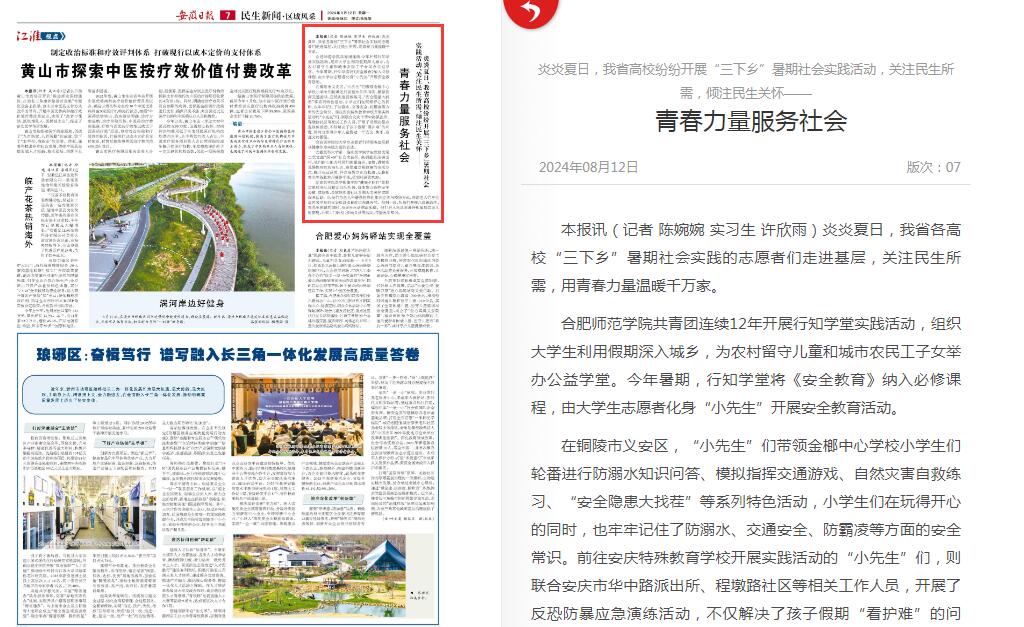 安徽日报:青春力量服务社会