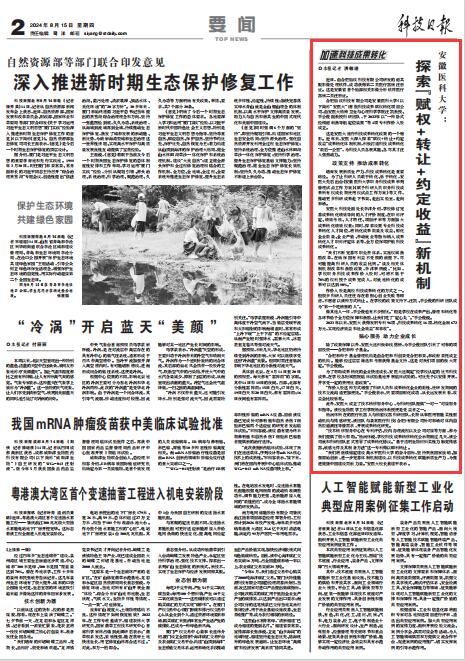 这是安医大施行科技成果转化政策的一个缩影。近年来,安医大深入探索“赋权+转让+约定收益”成果转化体制机制,积极打通科技成果转化“最后一公里”,为科技人员各展其能、各尽其才注入强劲动力。