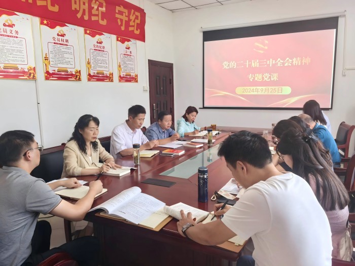 9月25日下午,法学院党委理论学习中心组在翡翠路校区怀远楼三楼311会议室开展学习,学院党委书记夏会林讲授学习贯彻党的二十届三中全会精神专题党课。会上还学习了《党的二十届三中全会<决定>学习辅导百问》的部分内容,传达学习了安徽省委十一届七次全会精神。