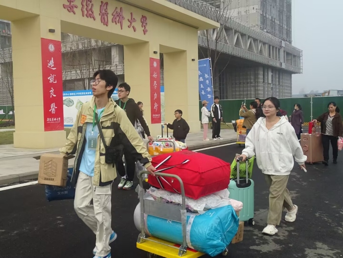 报到当天,新医科中心到处彩旗飘扬,欢迎横幅鲜艳夺目。报到现场,学院采取“一站式”“一袋化”报到新模式,新生在学院报到点完成信息核验后,直接领取学院精心设计的帆布袋,即可完成报到,入住宿舍。学院还特别设置了“新生留影墙”,色彩斑斓的留影墙前,新生兴奋地与家人、朋友合影留念,记录下这难忘的时刻。整个报到现场秩序井然、气氛热烈。“一进入校园,我一下子就有了归属感,我觉得自己特别幸运能来到这里。”新生小李兴奋地说道。