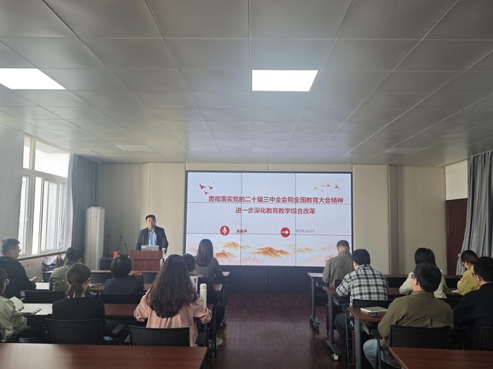 课上,凌春笋深入阐释了党的二十届三中全会精神以及《中共中央关于进一步全面深化改革、推进中国式现代化的决定》提出的重大举措,特别是针对《决定》提出的“教育、科技、人才是中国式现代化的基础性、战略性支撑”,结合学院学科建设、科研成果和人才培养实际,对进一步深化教育教学综合改革的重要性和必要性进行深度解读。