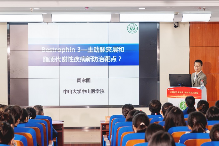 中山大学周家国教授、美国范德比尔特大学王永超教授两位专家,分别作了题为《Bestrophin3:主动脉夹层和脂质代谢性疾病防治新靶点》和《阿尔茨海默病溶酶体完整性的研究(Interrogation of Lysosome Integrity in Alzheimer’s Disease)》的学术报告,为大家带来了一场精彩纷呈的学术盛宴,进一步激发了研究生创新意识,拓展了其学术视野。提问环节,参会师生积极与各位专家交流讨论,学术气氛浓厚。