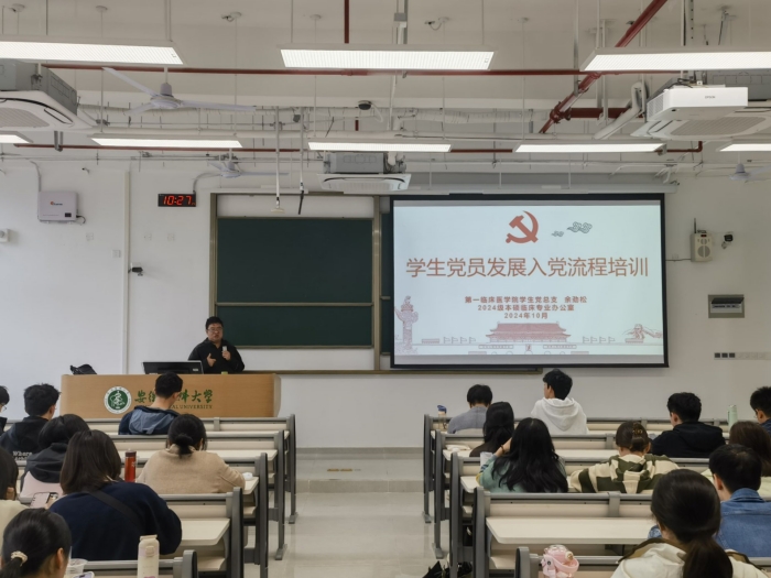 为引导新生扣好入党的“第一粒扣子”,学院学生党总支委员余劲松为新生开展入党启蒙教育,并围绕学习贯彻党的二十届三中全会精神进行主题宣讲,引导新生积极向党组织靠拢。2024级临床医学专业邓骏棋同学在培训后表示,自己更加深入了解了中国共产党的光辉历程,将端正入党动机,严于律己,争取早日成为一名共产党员。