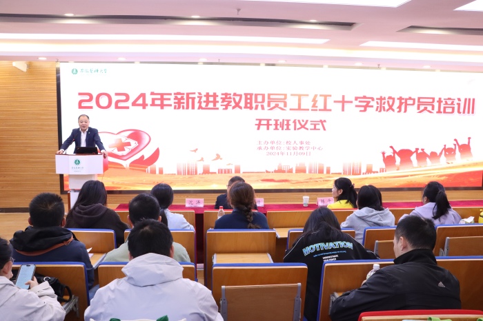 11月8日至9日,我校举办2024年新进教职工红十字救护员培训班。校人事处处长高跃峰、副处长韩平出席开班式,实验教学中心主任沈涛主持开班式并致辞。