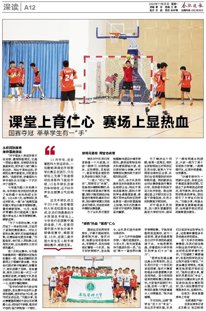 合肥晚报:课堂上育仁心 赛场上显热血——国赛夺冠 莘莘学生有一“手”