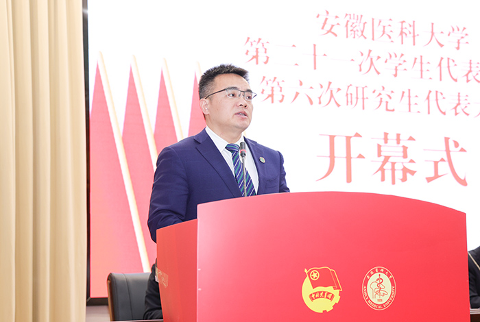 王琦代表学校党委,向大会的召开表示热烈祝贺,向长期以来支持和关心我校学生会、研究生会工作的广大师生表示衷心感谢。他充分肯定了学生会、研究生会在思想引领、服务同学等方面的优异表现,并希望以本次大会顺利召开为契机,谋划好未来一年的学生会、研究生会工作,为建设一流医科大学贡献青春力量。