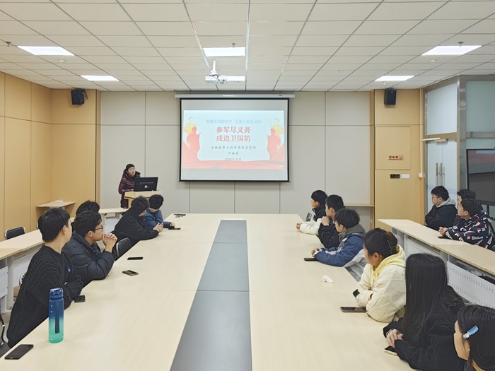 12月26日,生物医学工程学院在东校区开展以“参军尽义务,戍边卫国防”为主题的毕业生征兵入伍宣讲会,学院党委书记何婷婷作专题报告。