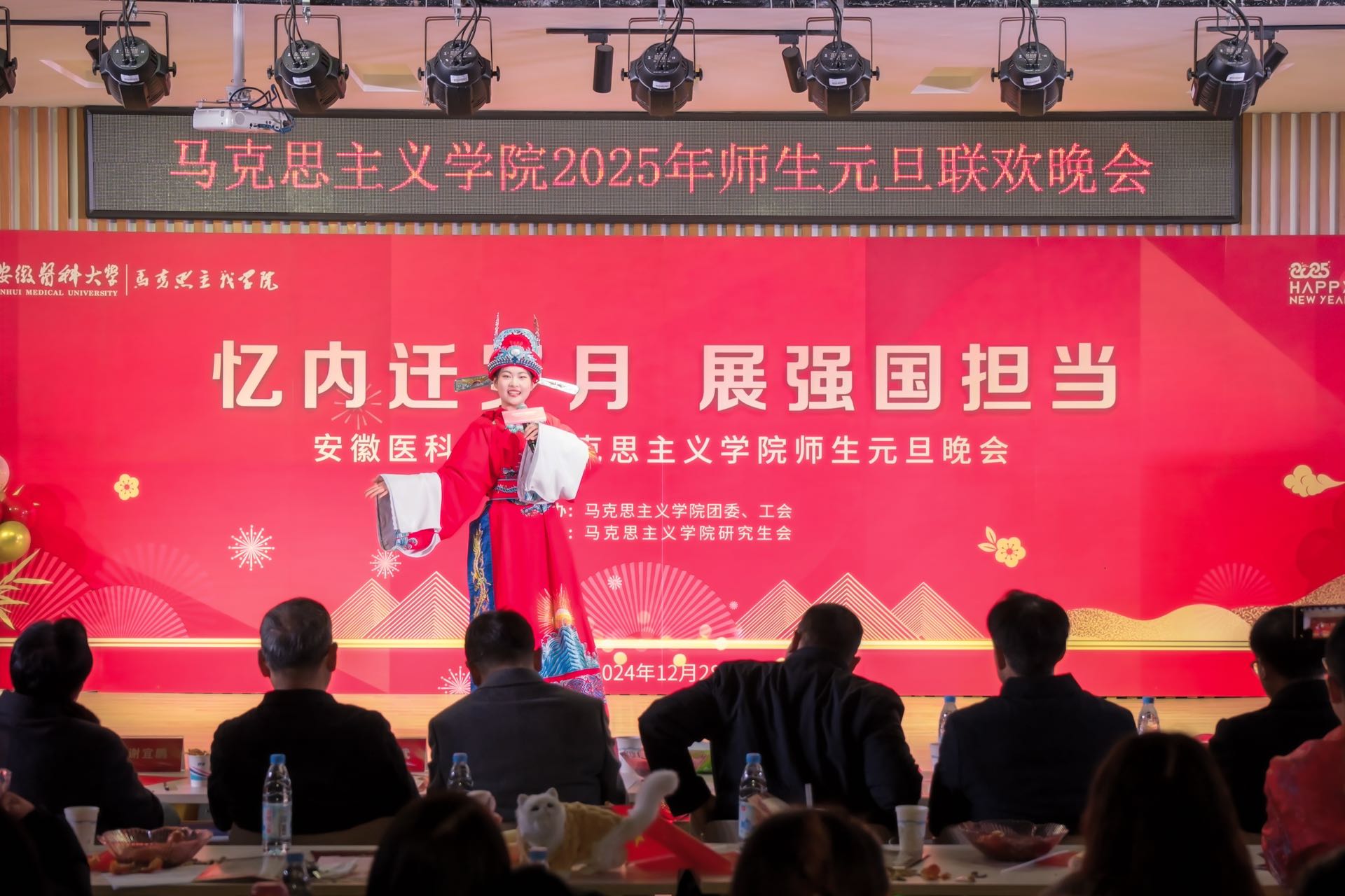 悠扬婉转歌曲《上春山》,仿佛带着现场师生一同进入了绿水青山的世外桃源;舞蹈《红马映江南》中,舞者用肢体勾勒出江南水乡的温婉与灵动;歌曲《如愿》唱尽家国情怀与岁月温柔,现代舞蹈《舞动青春动扬》则俏皮活泼,洋溢青春活力。歌曲《黄梅戏》将流行与戏曲元素相交织,展示了黄梅戏的独特韵味;小品《礼让六尺巷》,让观众在欢笑中感悟中华优秀传统文化和谐之道;经典爱国赞歌《共和国之恋》,以激昂旋律诉说科研人员对祖国的赤诚之心;《相亲相爱》唱出了全院师生“天下一家、团结和睦”的美好愿景。整场晚会在师生共同合唱的《歌唱祖国》中落下帷幕。