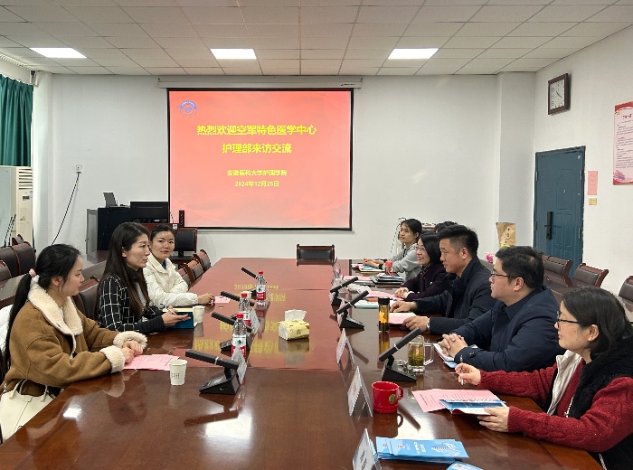 2024年12月26日上午,空军特色医学中心护理部主任史伟一行来我校护理学院交流访问。学院党委书记薛磊出席座谈交流会,副院长赵梅主持会议。