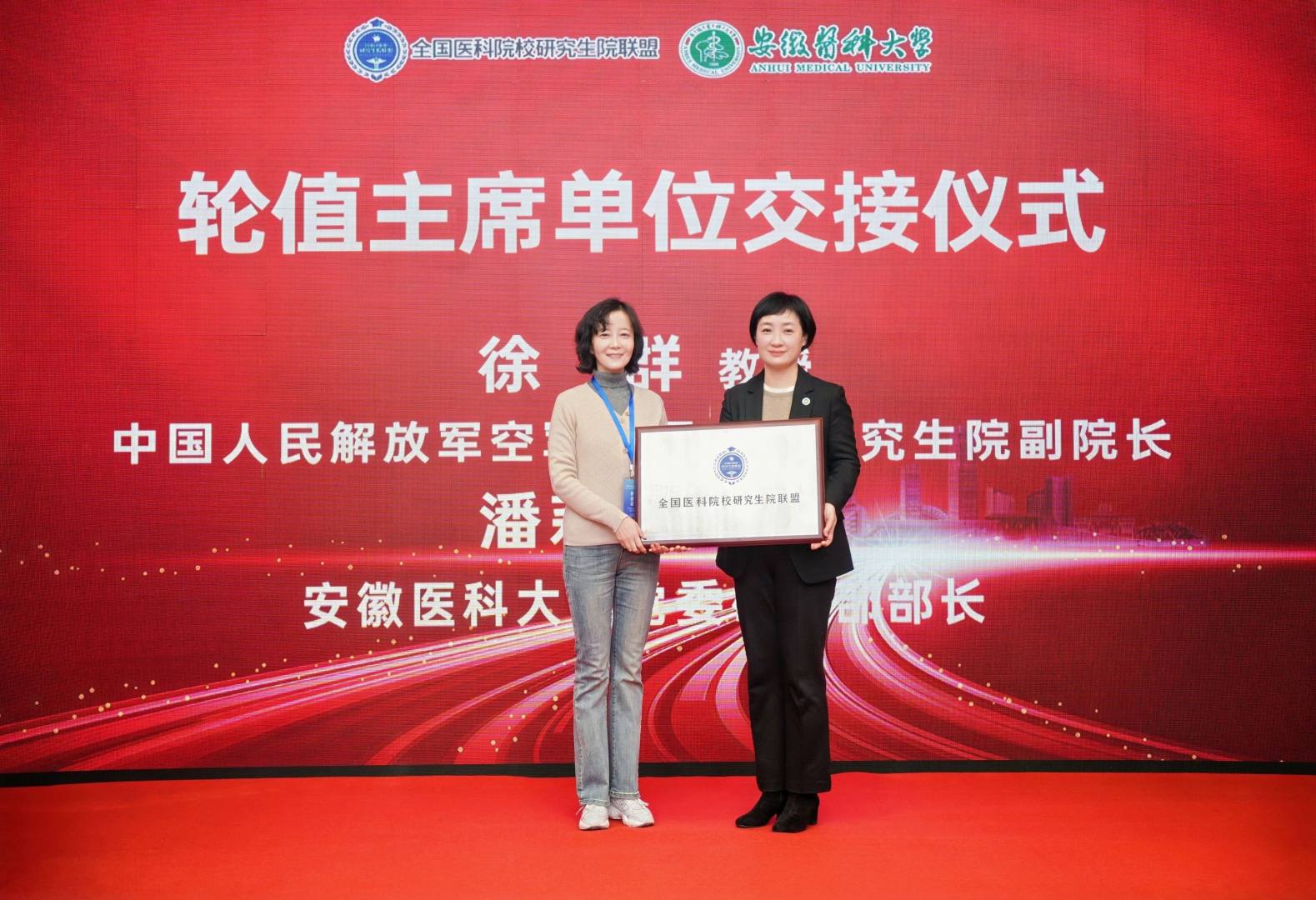 会上举行了轮值主席单位交接仪式。空军军医大学研究生院徐群副院长代表联盟轮值主席单位介绍联盟2024年度运行情况与工作成效,拉斯维加斯国际平台首页 党委研工部部长潘莉莉代表新任轮值主席单位介绍联盟2025年工作计划。