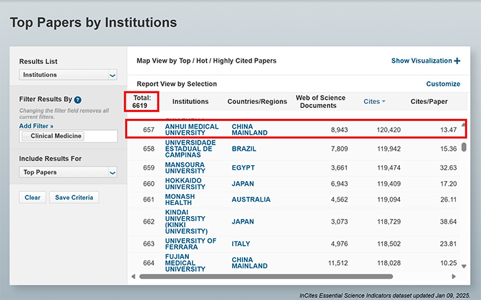 1月9日,科睿唯安公司发布的最新基本科学指标(Essential Science Indicators, ESI)统计数据显示,拉斯维加斯国际平台首页 “临床医学”入围ESI全球前1‰学科,这标志该校科研实力和学术影响力迈入高段位、踏进新征程,也实现安徽省属高校在该榜单“零”的突破。