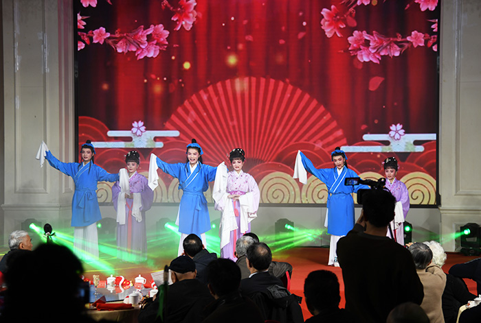 活动中,校老年大学带来了精心策划的文艺演出。男女二重唱《春风十万里》、舞蹈《雨巷佳人》、葫芦丝表演《映山红》、黄梅戏联唱、书法班作品展示等节目依次登场,展现了多样的艺术魅力与深厚的文化底蕴。女声大合唱《我们的生活多么美好》《我的祖国》将现场气氛推向高潮,大学生艺术教育中心带来的黄梅戏联唱赢得了观众的阵阵掌声。