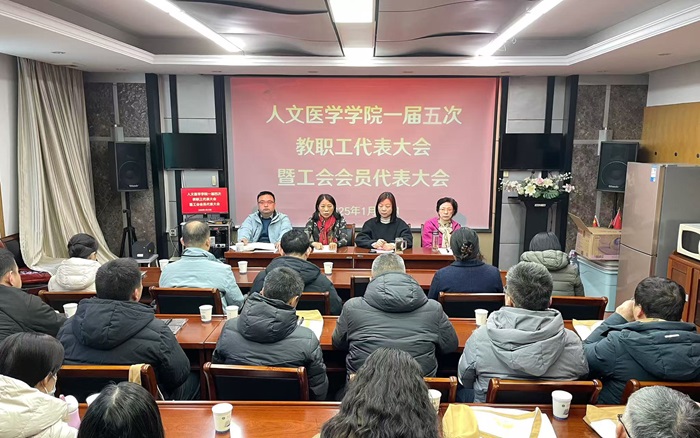 1月15日下午,人文医学学院召开一届五次教职工代表大会暨工会会员代表大会。学院党委书记杨秀兰主持会议,院长解雪峰作2024年度院长工作报告。