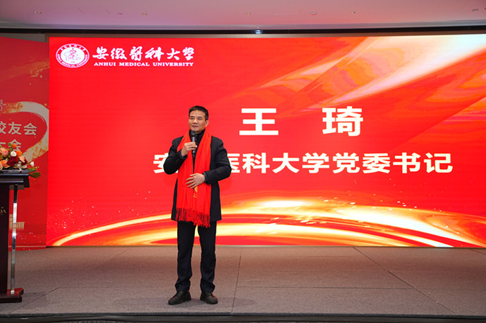 王琦代表学校向南京校友会的成立表示热烈祝贺,对广大在宁校友长期以来对母校发展的关心和支持表示衷心的感谢。他介绍了近年来学校在人才培养、学科建设、科技创新、人才队伍建设、卫生健康服务等方面取得的成就,表示学校的快速发展离不开全体师生、校友们的倾情付出和鼎力支持。他指出,南京是长三角乃至全国教育科技的重镇,汇聚了大批知名高校、医院和高科技企业,是学校高质量校友的“集聚地”,是学校创新驱动发展的“枢纽站”。学校将借宁合双城战略合作的机遇,大力深化与南京高校、医院、企业的交流合作,为推动长三角一体化发展继续贡献安医智慧和安医力量。