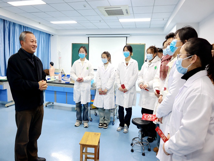 2月8日,新春伊始,校长翁建平赴附属巢湖医院,实地察看诊疗工作,向一线医务人员和在院学生致以新春的问候和美好的祝福,并召开座谈会听取医院建设发展情况。