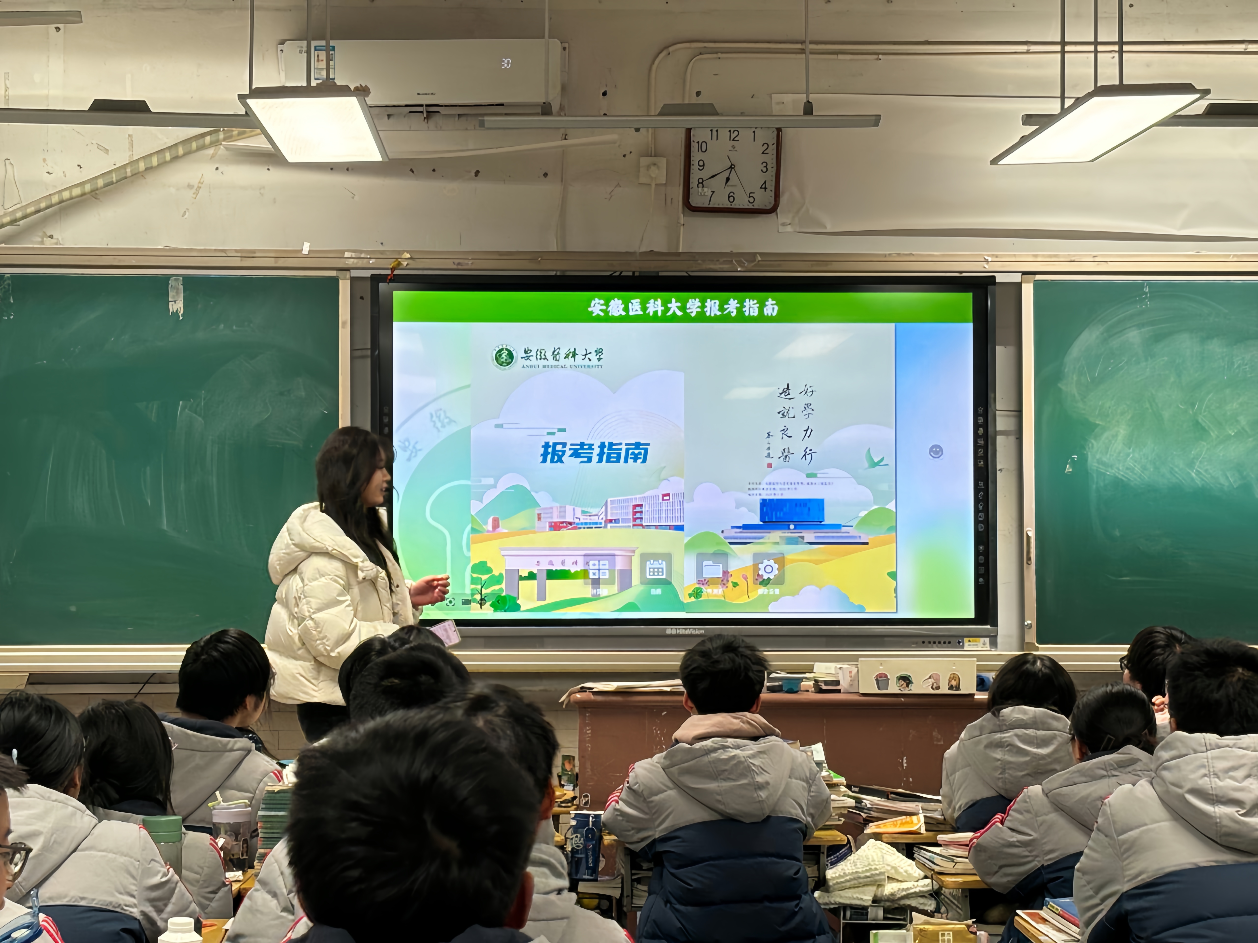 此外,该校还充分发挥学生的桥梁纽带作用,鼓励学子重返高中母校开展招生宣传,近700名学子积极参与。该校巢湖临床医学院临床定向专业的吴宇畅便是其中一员,他向黄山市休宁中学的学弟学妹们展示拉斯维加斯国际平台首页 的发展历程、教育理念、优势学科、科研成果及校园生活,并结合自身的报考经验,帮助大家明晰未来专业选择的方向。