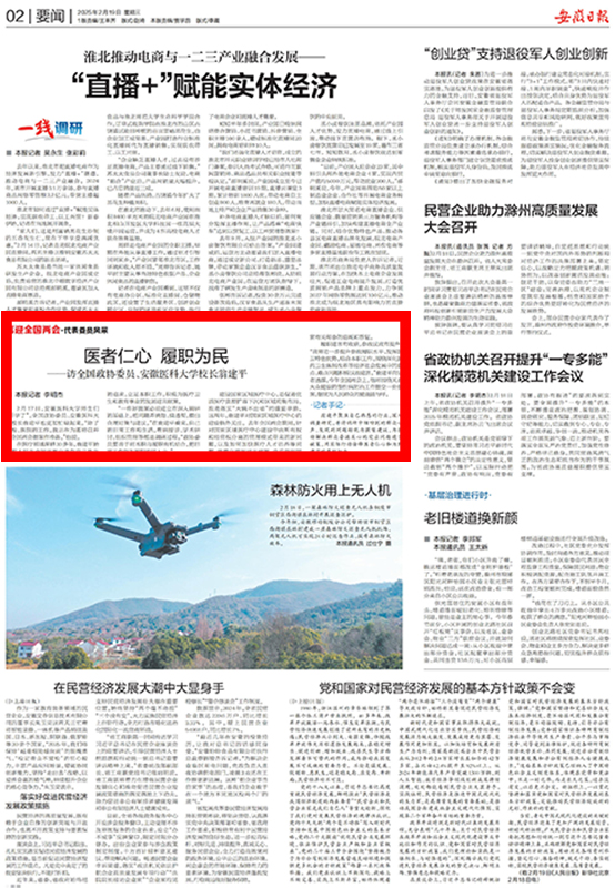 安徽日报:医者仁心 履职为民 ——访全国政协委员、拉斯维加斯国际平台首页 校长翁建平