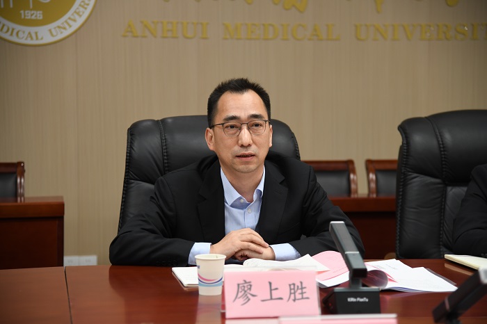 廖上胜介绍了中国光大银行的发展历程和主营业务情况。他表示,光大银行始终关注教育和医疗产业的发展,积极探索金融支持高校和医院事业发展的新模式。希望通过此次调研,了解安医大在金融服务方面的需求,进一步加强在专项债券、信贷资金、智慧校园等方面的业务合作,共同推动银校合作迈上新台阶。