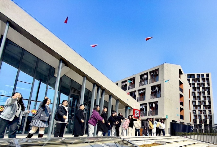 “压力纸飞机”区域,同学们领取彩纸和彩笔,将那些难以言说的烦恼、生活的琐碎,匿名书写在彩纸上。随后,一个个承载着压力的纸张被折成纸飞机,在同学们有力的抛掷下,飞向远方。极具仪式感又充满童趣的方式让压力随风而散,也祝福同学们在前行的道路上都可以“轻装上阵”。