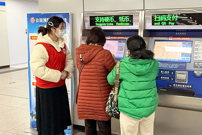学院2024级研究生团总支的近20名团员青年,则前往合肥三里庵地铁站开展“实践强担当、共建聚合力”志愿服务活动。志愿者们通过手势指引、语音提示等方式协助乘客快速购票、进出站,并配合地铁工作人员处理设备故障、乘客问询等突发情况,积极维持地铁站的秩序。