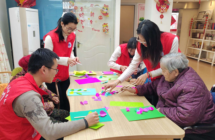 由学院2022级临床药学专业93班本科生组成的志愿者服务队,前往乐年龚大塘养老院开展志愿服务活动。学子们通过带领老人练习手指健身操预防认知衰退,以顺口溜科普心梗预警信号,演示海姆立克急救法等,将专业关怀转化为守护生命的实践技能,为养老院老人带去温暖与关怀。