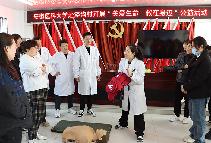 实验教学中心前往霍邱县宋店镇看湖墩村、城关镇泽沟村 为当地中小学生、村干部和村民开展应急救护知识科普培训。