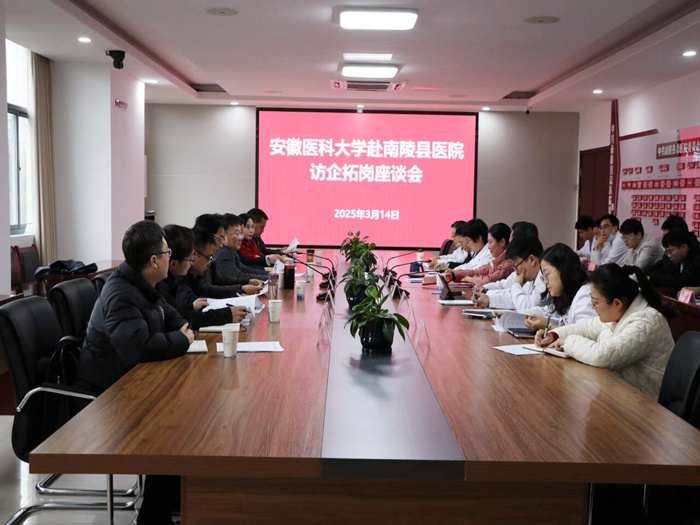3月14日至15日,第二临床医学院、卫生管理学院和医学人文学院前往皖南康复医院、南陵县医院,联合开展访企拓岗促就业专项行动。校本科生工作部副部长杜文海、卫生管理学院党委书记赵云峰、第二临床医学院(第二附属医院)党委副书记鲍丙刚、医学人文学院党委副书记章镜、第二临床医学院学生党总支副书记余皖婉参加活动,南陵县医院党委书记方春红、皖南康复医院副院长胡剑辉等人参加座谈交流。