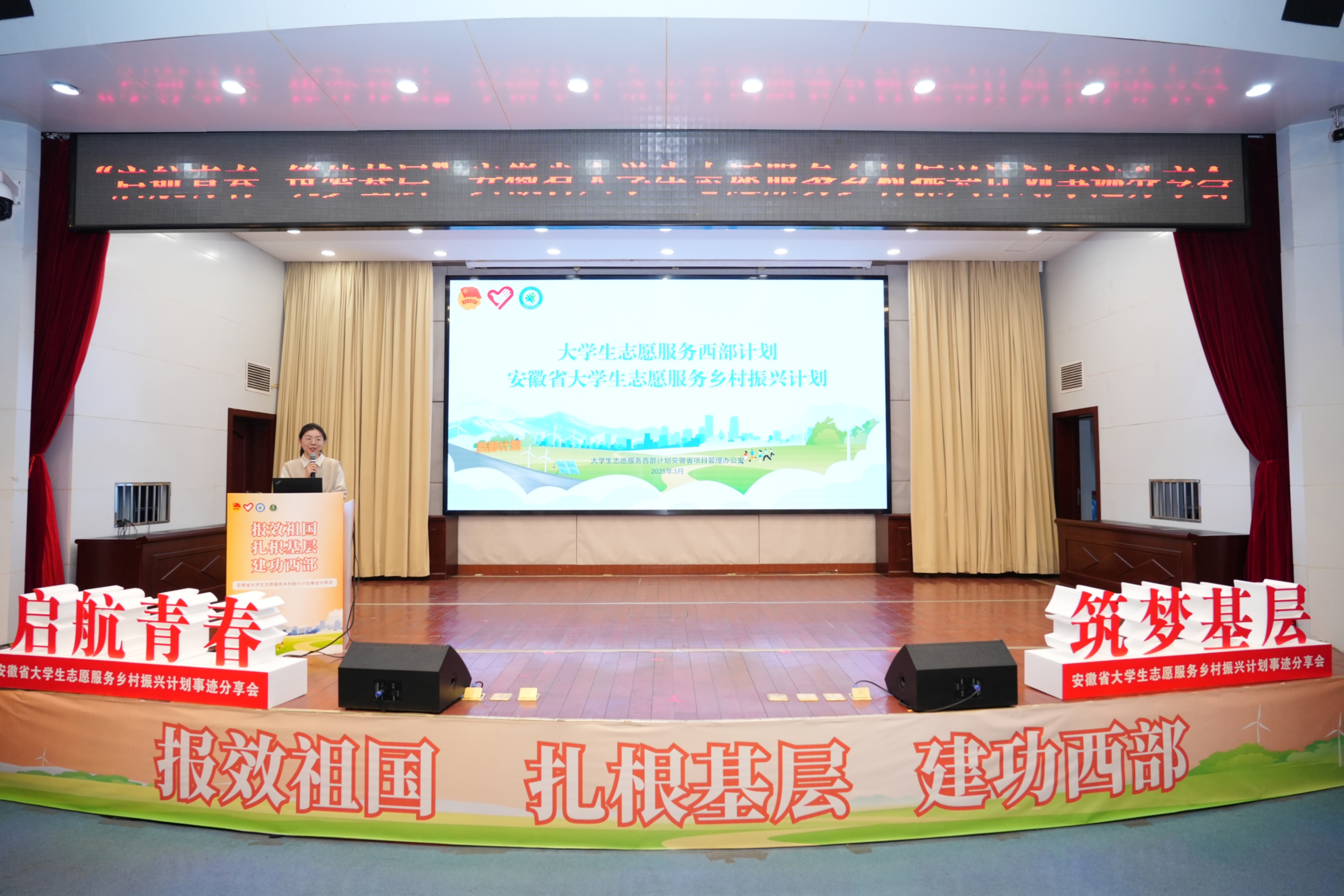 3月17日,2025年“报效祖国 扎根基层 建功西部”安徽省大学生志愿服务事迹首场分享会在我校梅山路校区图书馆第一学术报告厅举办。团省委书记陈明生、我校党委书记王琦、省教育厅二级巡视员周晓芹、省人社厅二级巡视员徐尚振、团省委副书记周宇、学术副校长张智出席活动。