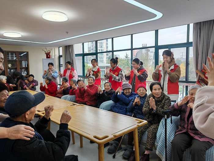 学生志愿者们走进亿家心安护理院,开展“趣享运动,乐享银龄”主题活动。他们结合老年群体身心特点,精心设计了手势操、玩套圈小游戏等适老化互动项目,并发挥专业优势,在老人参与活动的同时开展健康知识宣讲。在“春日踏青·诗意同行”关爱项目中,学生志愿者组织自闭症儿童开展户外认知训练。在步行过程中,学子引导孩子们观察自然、感受自然,激发他们对生活的热爱和对美好未来的憧憬。