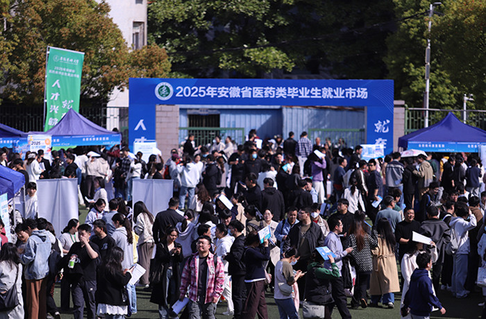 此次安徽省医药类毕业生就业市场由安徽省教育厅、安徽省卫生健康委员会主办,也是我校连续第25次承办全省医药类综合招聘活动,共吸引来自省内及江苏、浙江、上海、山东等全国十多个省份的380家单位参会。安徽省内参会单位达229家,其中医疗卫生单位167家,生物医药单位62家;省外参会单位151家,其中医疗卫生单位127家,生物医药单位24家。本次就业市场累计提供就业岗位10000余个,吸引省内医学院校8000余名毕业生参会。