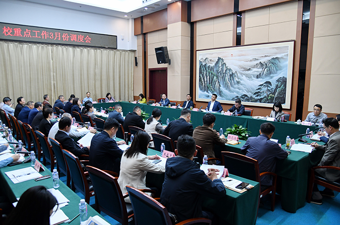 3月26日下午,学校召开重点工作3月份调度会。会议听取2月调度事项办理进展,现场调度2项重点工作,书面调度7项重点工作,通报4项重要指标数据。校党委书记王琦主持会议并讲话,校领导、校党委常委出席会议。