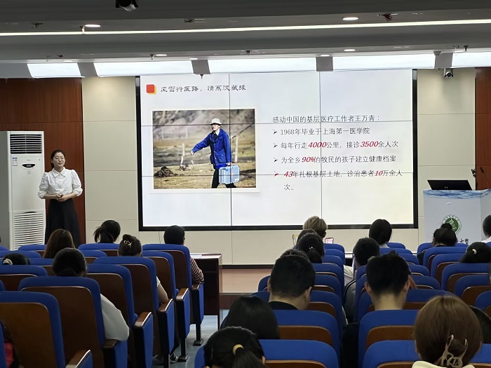 2024级公共卫生专业研究生高萌以“五四精神:青春的力量与时代的召唤”为题,通过一张张泛黄的历史照片,带领观众回到1919年的街头。她深情呼吁:“今天的我们,或许不会面临血与火的考验,但依然可以在实验室的瓶瓶罐罐中,在每一次社区健康宣讲里,在平凡的岗位上铸就非凡的人生。”2021级预防医学专业本科生李丹以“文化自信映时代,科技创新启未来”为题,充分挖掘传统文化和现代科技之间千丝万缕的联系,号召团员青年要在中华优秀传统文化中汲取力量,在科技飞速发展的现代踏浪前行。2023级预防医学专业本科生以“觉醒的一秒:与时代共振的心跳”为题,细数了公共卫生发展历史长河中那些关键的“一秒”,从伍连德抗击鼠疫讲到当代疫情防控,“公卫人”的每一秒汇聚成了我国公共卫生事业发展的绚丽长河。“健康中国,我辈担当”的誓言铿锵有力,回荡在整个报告厅,将气氛推向高潮。