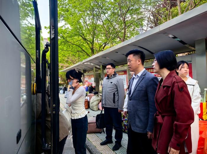 4月7日至8日实习转点期间,学院领导班子成员深入翡翠路、梅山路两个校区,一线指挥调度。学院带队教师化身“天使护航员”,耐心解答转点过程中学生的各种疑问,帮助大家顺利办理转点手续,确保每一位学生都能平稳过渡到新的实习岗位。在带队老师们的带领下,2026届361名实习生顺利到达省内外18家实习单位,并完成报到;2025届345名实习生被安全接回翡翠路校区,圆满完成“顺利送达、做好交接、平安返校”的工作目标。