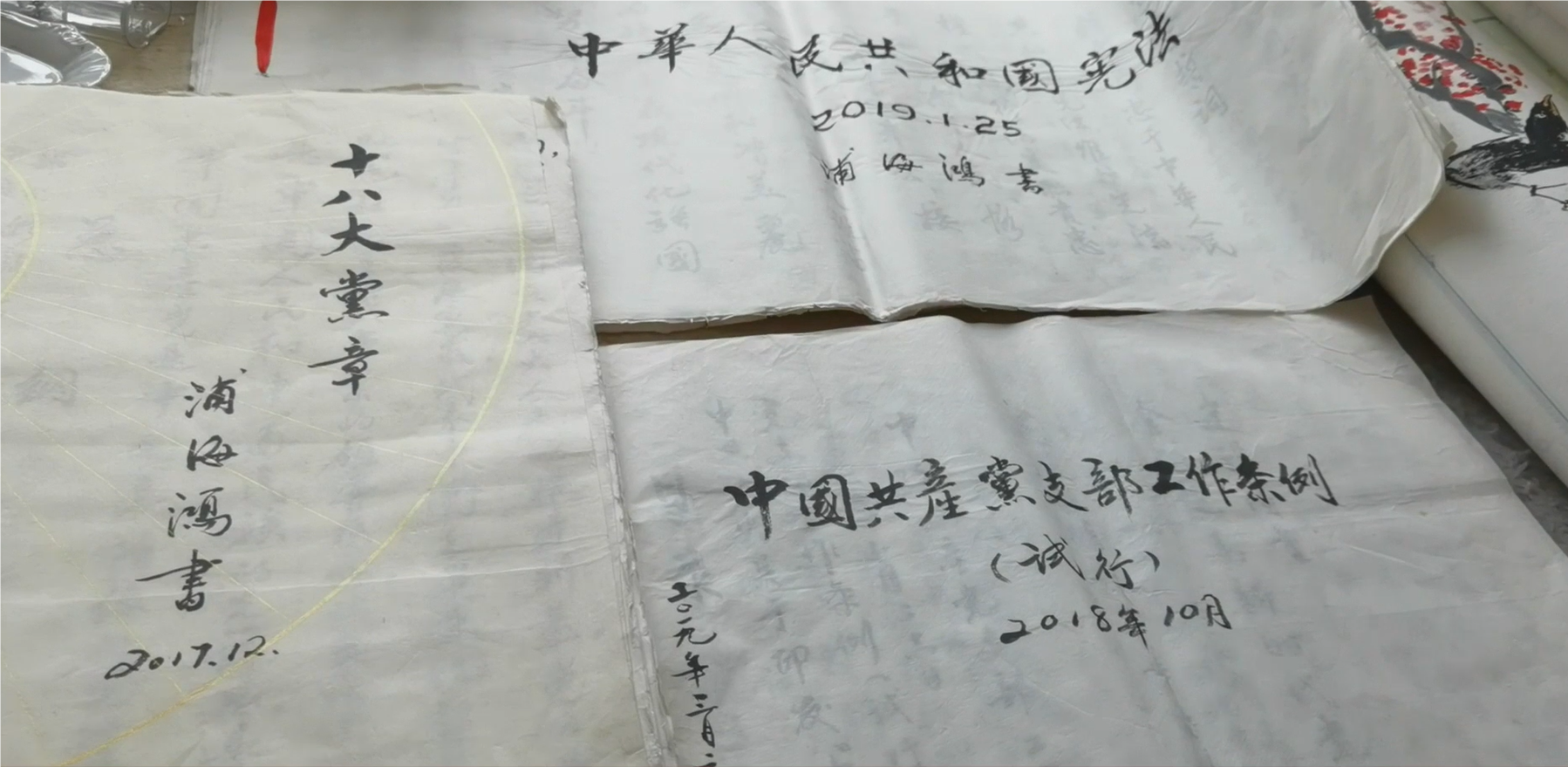 在浦海鸿老人的家中,有一本珍贵的“党章”,这本封面已经有点破损的党章手抄本,宣纸线装,整整111页。这是2017年党的十九大召开之际,时年87岁高龄的浦老用了整整一个月的时间手抄完成的,遒劲精致的行书镌刻着老人对党的一片赤诚之心。
