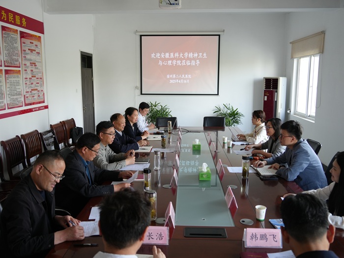 4月16日下午,精神卫生与心理科学学院院长朱春燕一行前往宿州市第二人民医院开展“访企拓岗促就业”专项行动,重点围绕实习基地建设、就业岗位拓展等进行座谈交流。宿州市第二人民医院党委书记魏永出席座谈会。